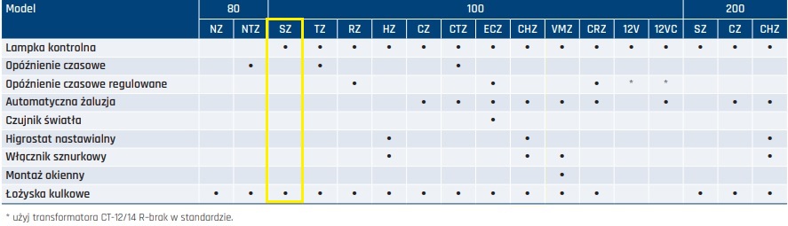 (porównanie z innymi modelami, na żółto zaznaczono wentylator z tej oferty)