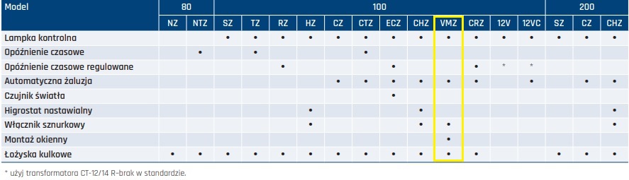 (porównanie z innymi modelami, na żółto zaznaczono wentylator z tej oferty)