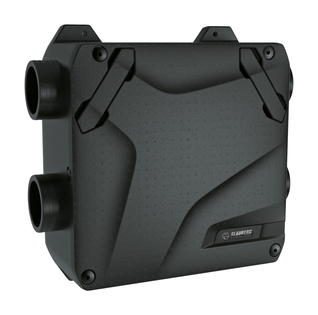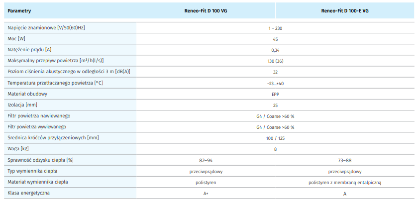 - Seria Reneo-Fit D 100-E jest wyposażona w entalpiczny przeciwprądowy wymiennik ciepła do odzysku ciepła i wilgoci.