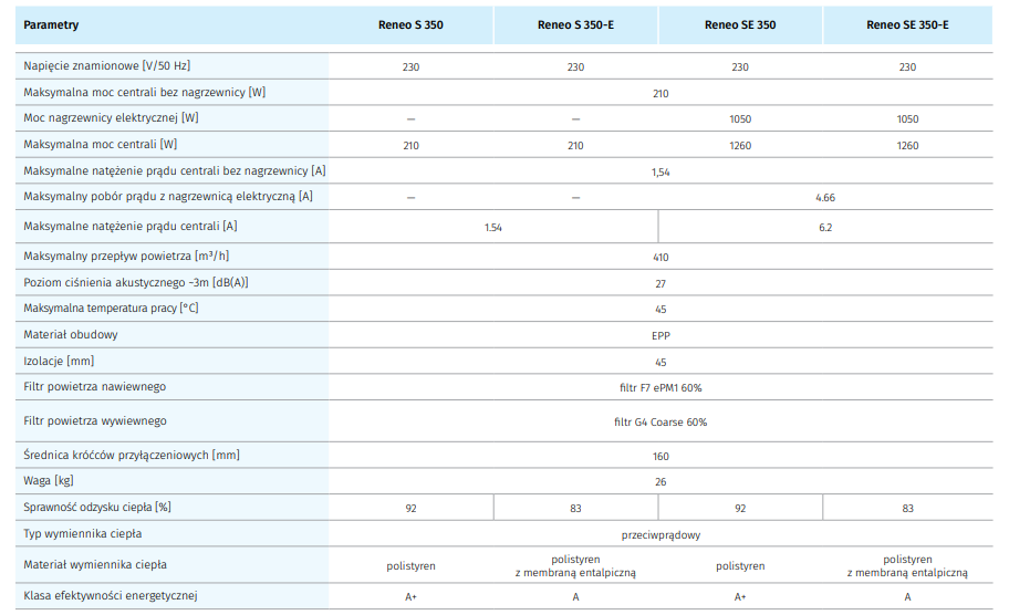 - Seria Reneo S...-E jest wyposażona w entalpiczny przeciwprądowy wymiennik ciepła do odzysku ciepła i wilgoci.