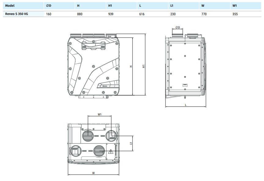 Centrala wentylacyjna nawiewno-wywiewna RENEO SE 350-E VG z nagrzewnicą elektryczną - wymaga dokupienia sterownika S80 lub S90.