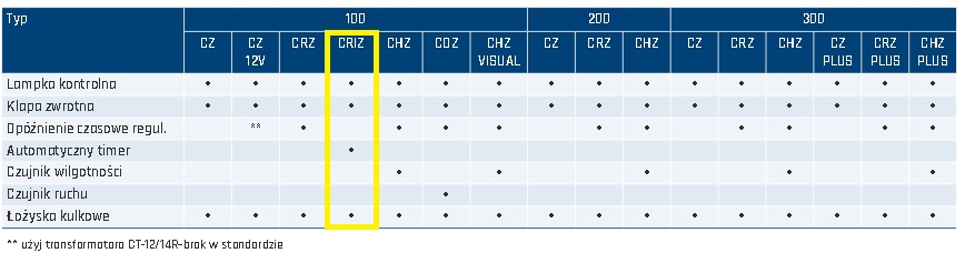 (porównanie z innymi modelami, na żółto zaznaczono wentylator z tej oferty)